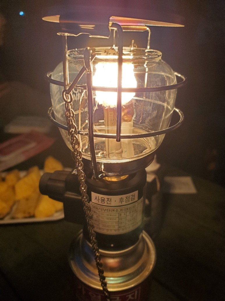 해가 지고 어둠이 내려와서 랜턴을 켜니 감성캠핑이 되는 대요