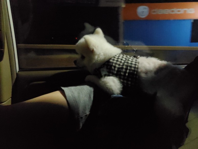 두부는 차를 타면 창문에 서서 바깥 풍경을 보며 바람도 맡으며 좋아합니다